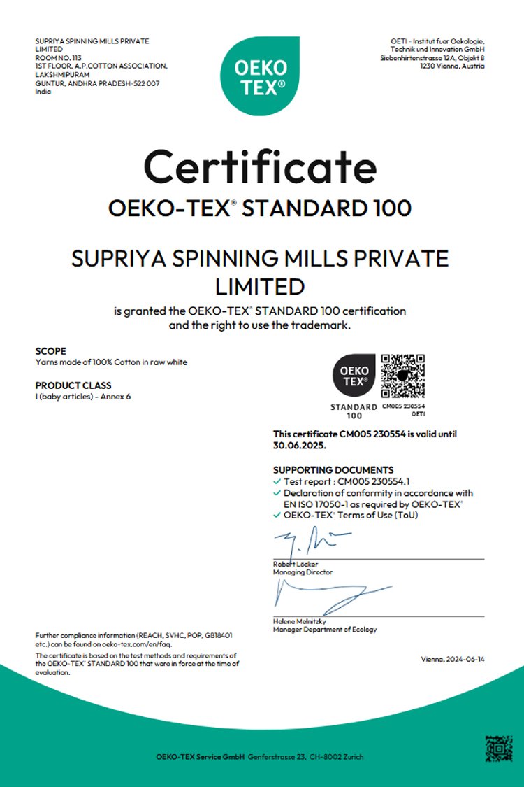 Certificate of OKEO-TEX STANDARD 100
